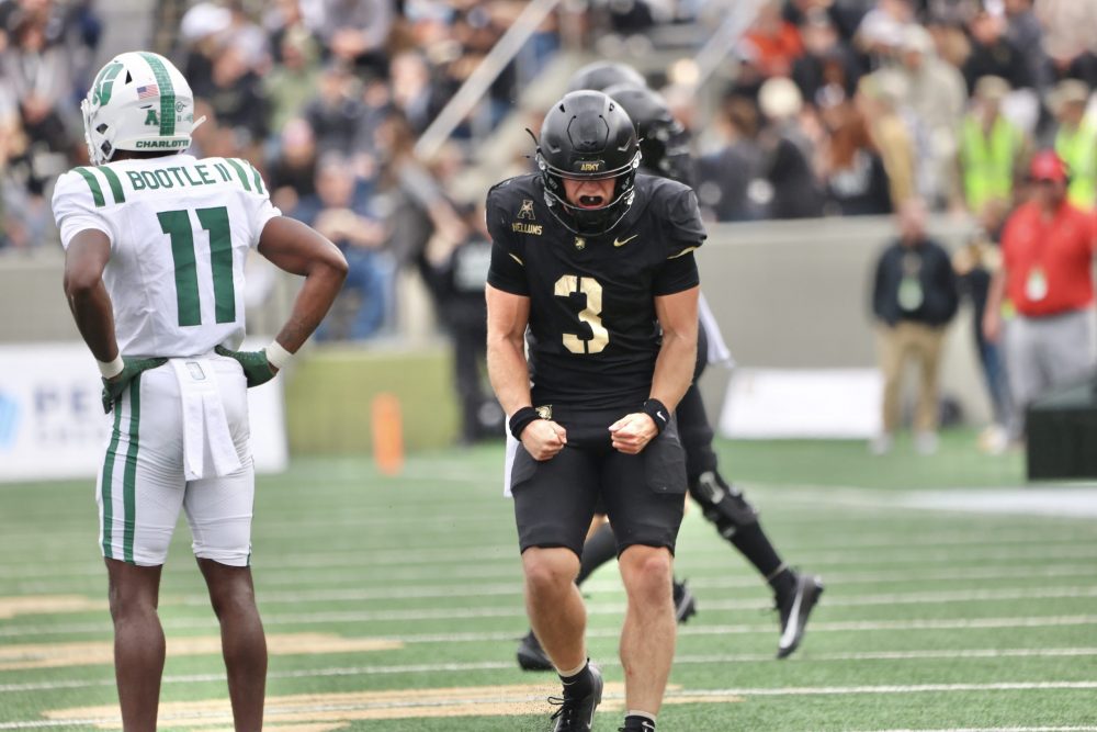How much did the Black Knights lose by? They didn’t. In fact, Army handily defeated the visiting 49ers, 24-7, before a sold-out crowd of 31,117 at a misty Michie Stadium to even its overall record at 3-3 and 2-2 in the American Conference. Charlotte fell to 1-5 overall and 0-3 in the American.
