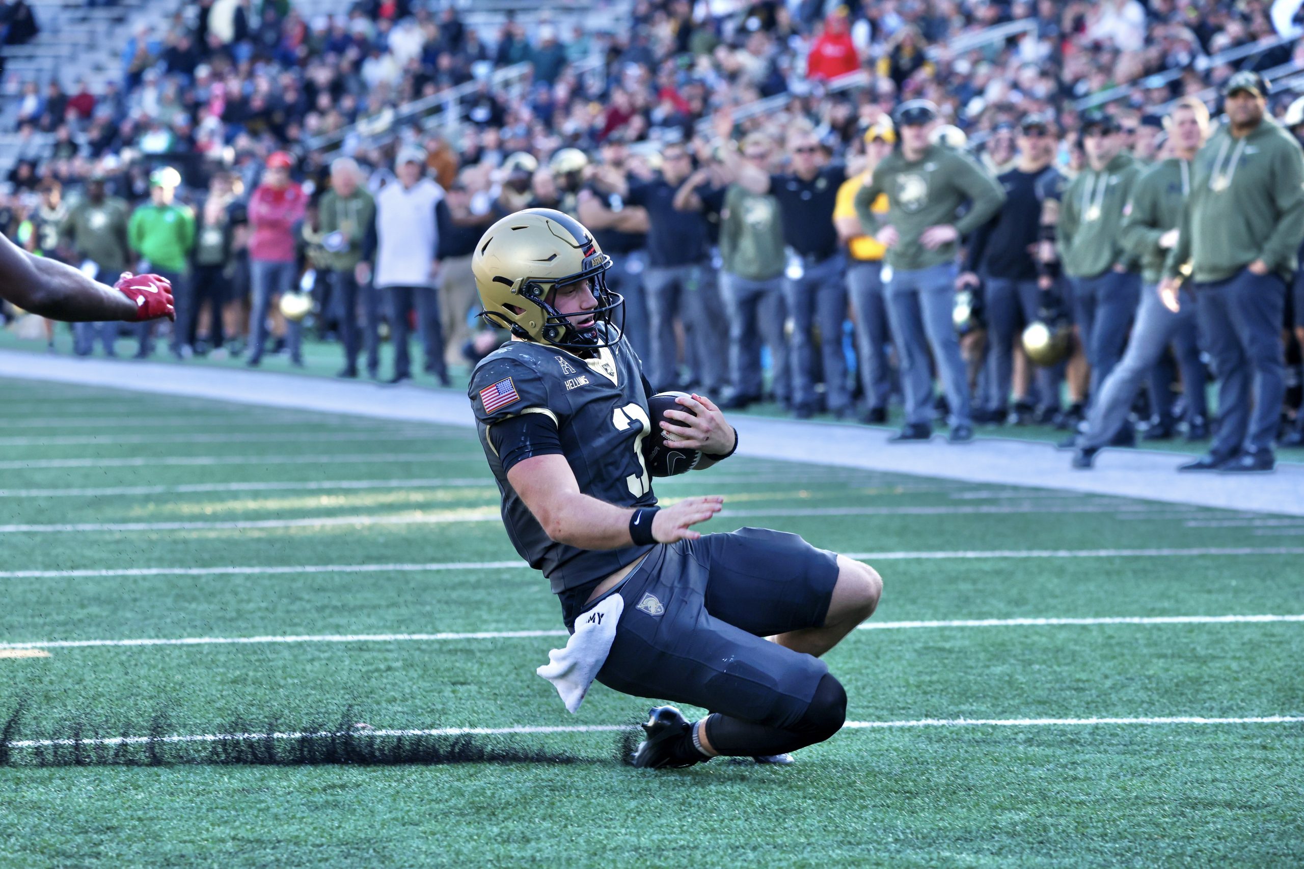 “You know, you always want to get in the end zone when you can,” said Hellums. “But to win that game, it was a barrier play and we work on that every week. Coach (Jeff) Monken said, get inside and go down, take a knee so we can just get into victory formation and end it with the ball in our hands.”