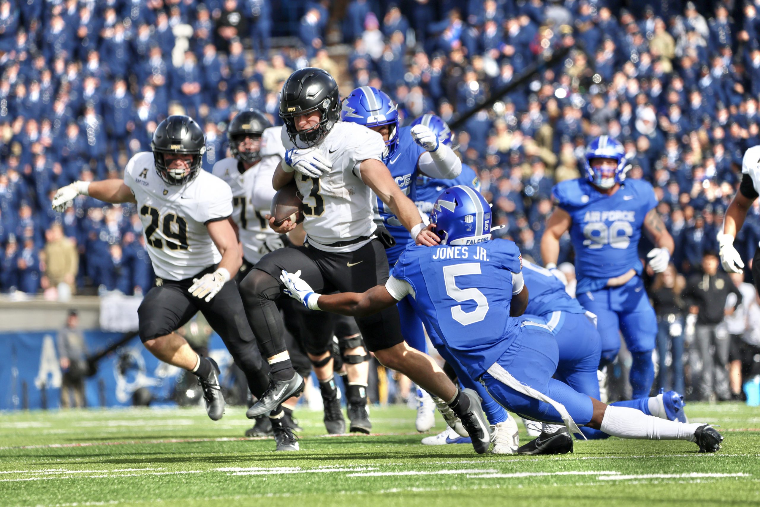 “My freshman year, coach Monken told me on the field of the Army-Navy game that year that I was going to win this team some C-I-C games and beat Air Force,” said Hellums, who had 98 rushing yards and a touchdown on 26 carries and was 5-for-9 passing for 102 yards including a 40-yard scoring pass to Noah Short in the first quarter. “(After the game), I said, ‘You told me that was going to happen and it did.’ I just got emotional. It was an awesome feeling.”